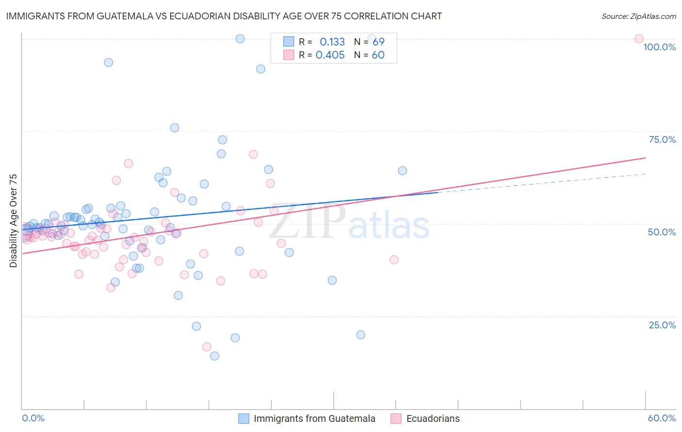 Immigrants from Guatemala vs Ecuadorian Disability Age Over 75 Correlation Chart