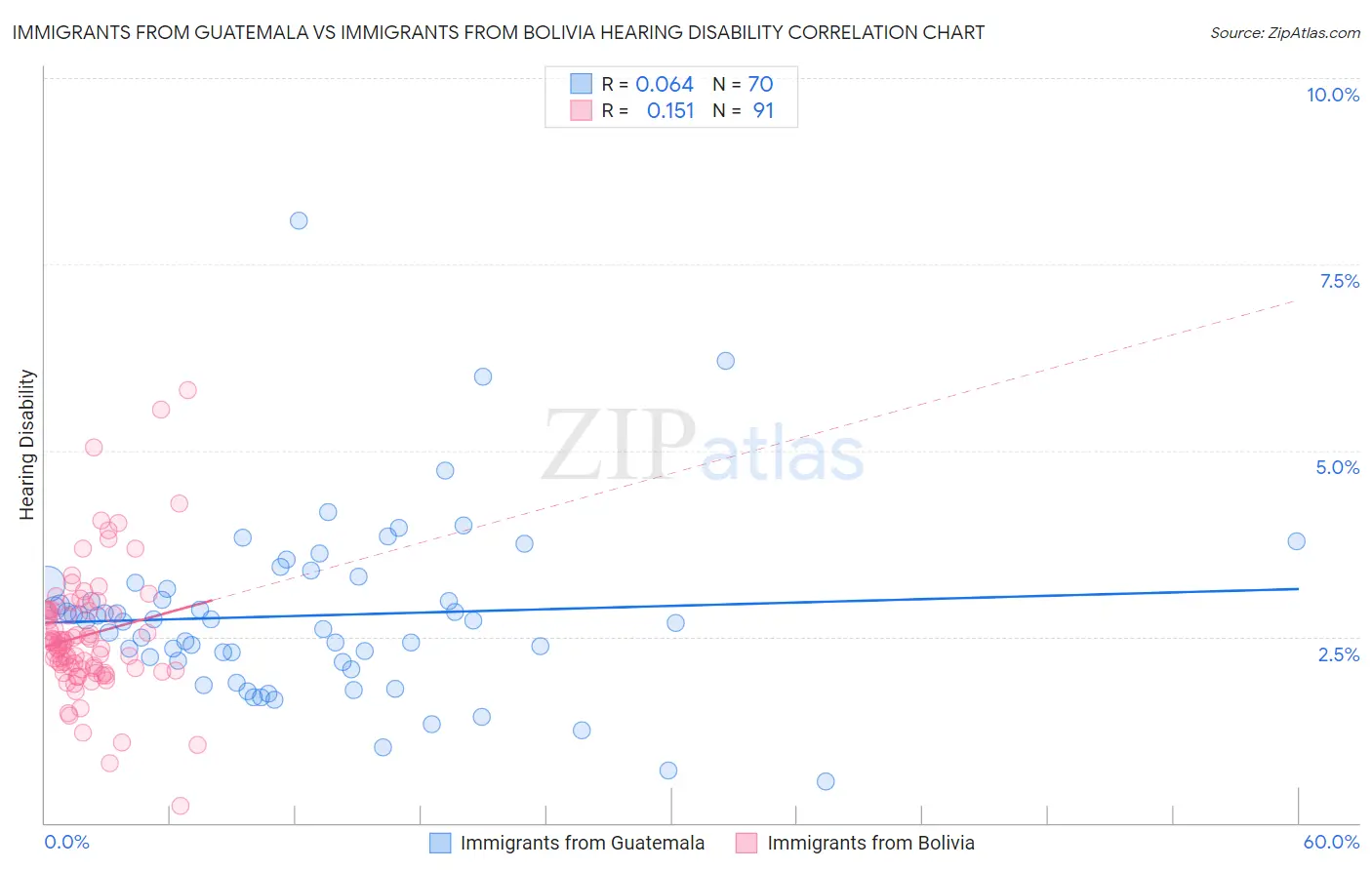 Immigrants from Guatemala vs Immigrants from Bolivia Hearing Disability Correlation Chart