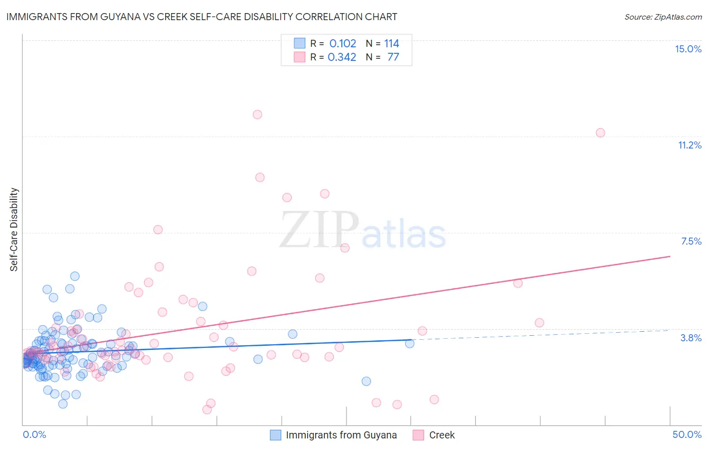 Immigrants from Guyana vs Creek Self-Care Disability Correlation Chart