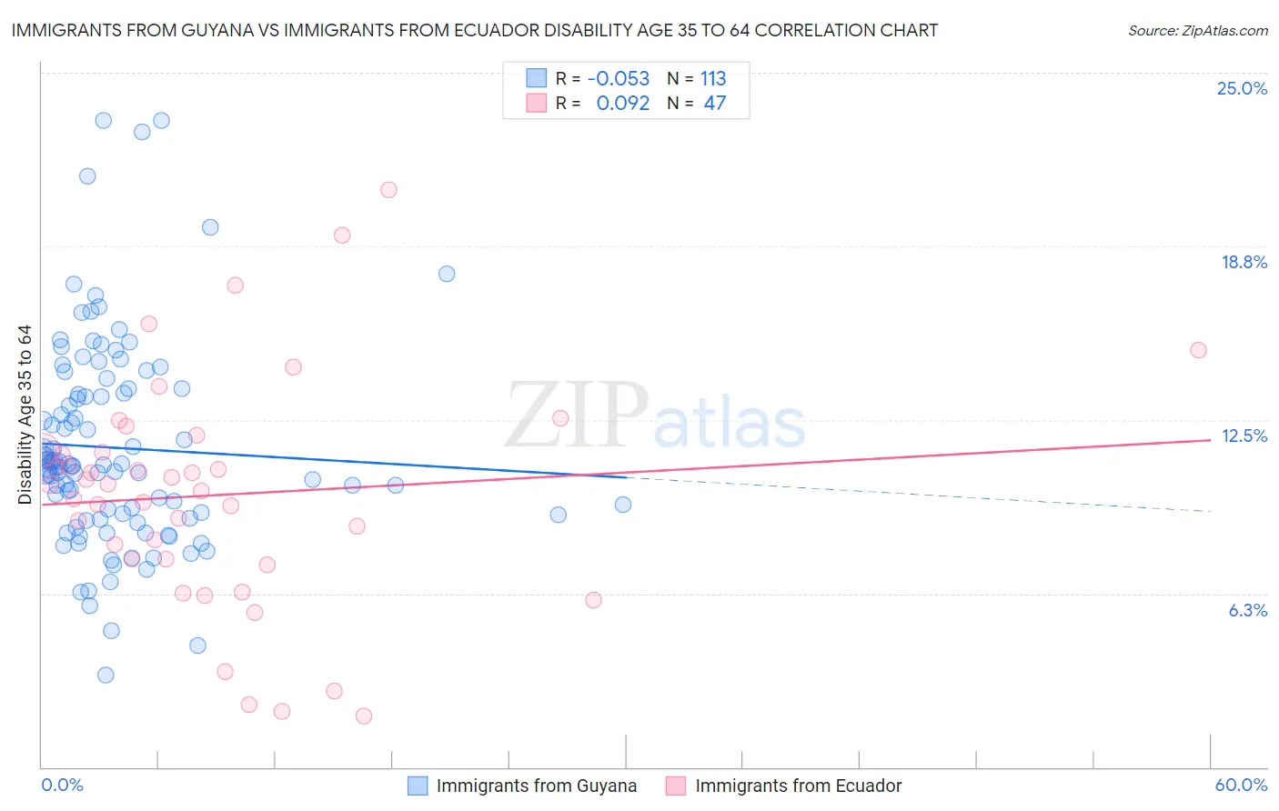 Immigrants from Guyana vs Immigrants from Ecuador Disability Age 35 to 64 Correlation Chart