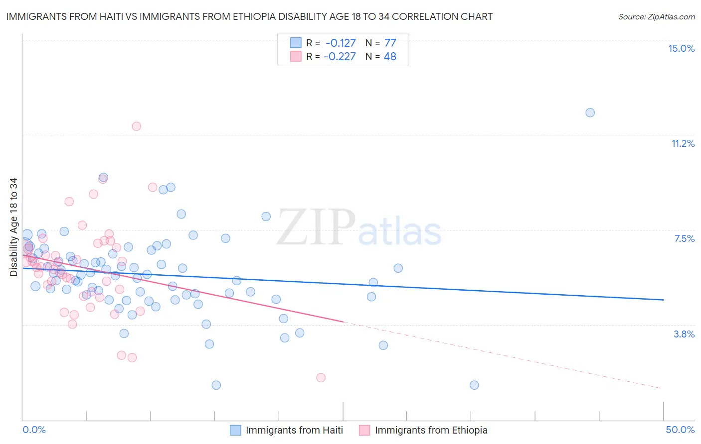 Immigrants from Haiti vs Immigrants from Ethiopia Disability Age 18 to 34 Correlation Chart