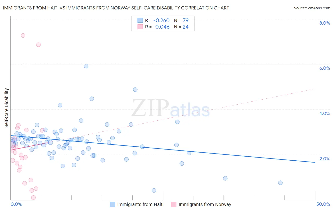 Immigrants from Haiti vs Immigrants from Norway Self-Care Disability Correlation Chart