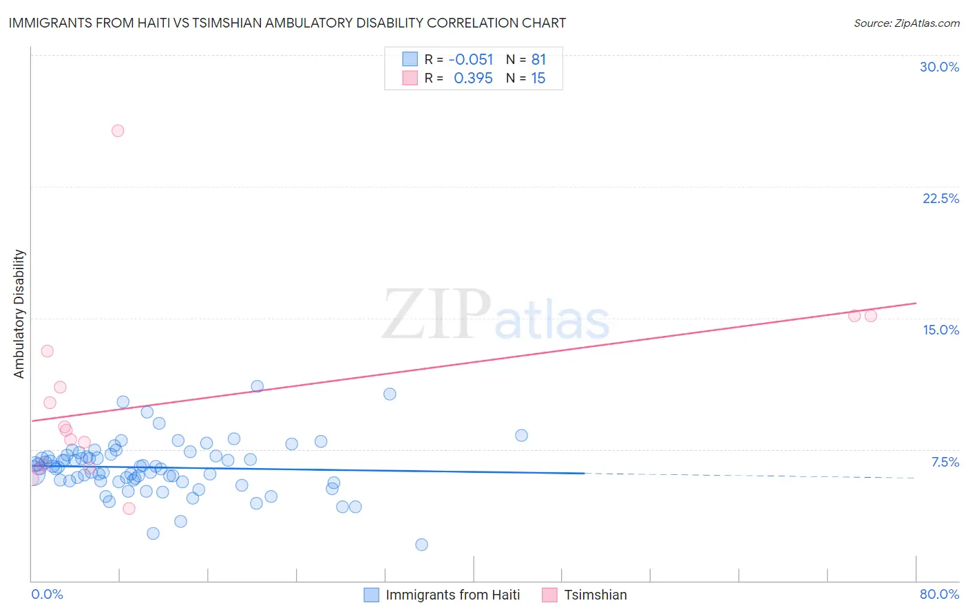 Immigrants from Haiti vs Tsimshian Ambulatory Disability Correlation Chart