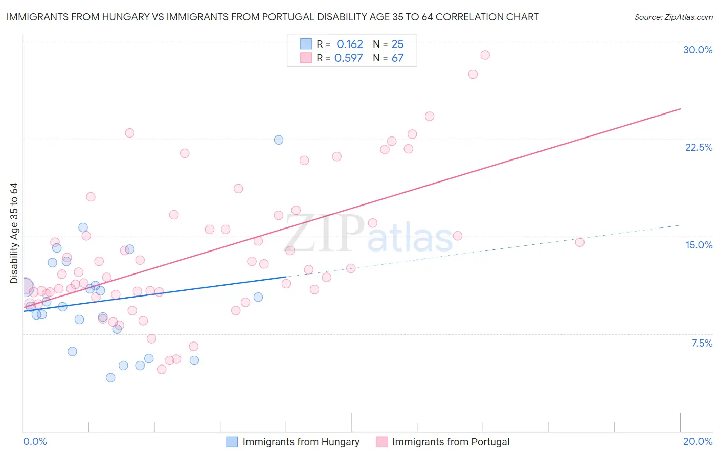 Immigrants from Hungary vs Immigrants from Portugal Disability Age 35 to 64 Correlation Chart
