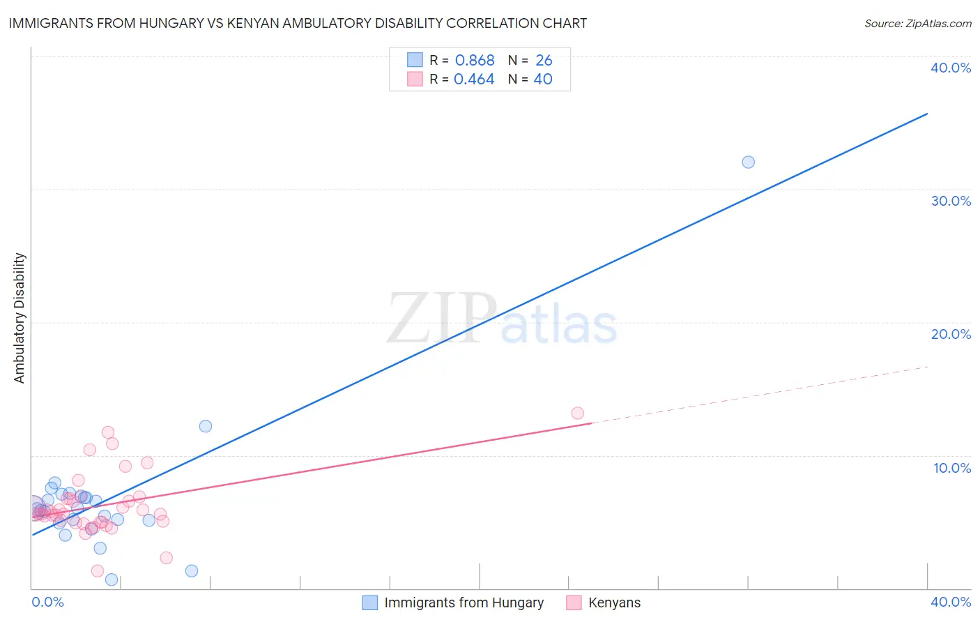 Immigrants from Hungary vs Kenyan Ambulatory Disability Correlation Chart