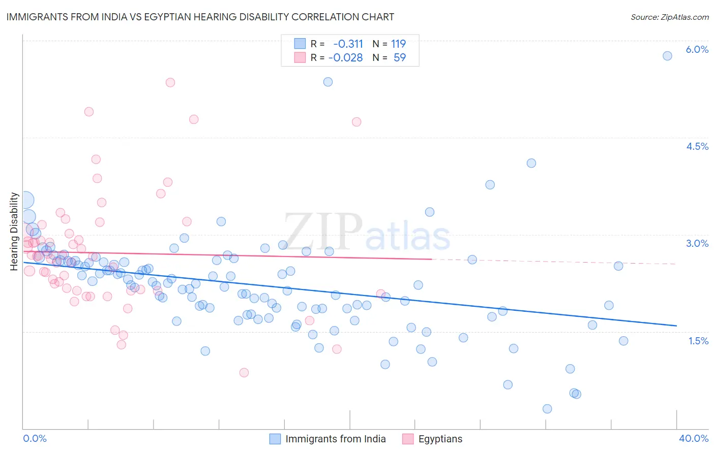 Immigrants from India vs Egyptian Hearing Disability Correlation Chart