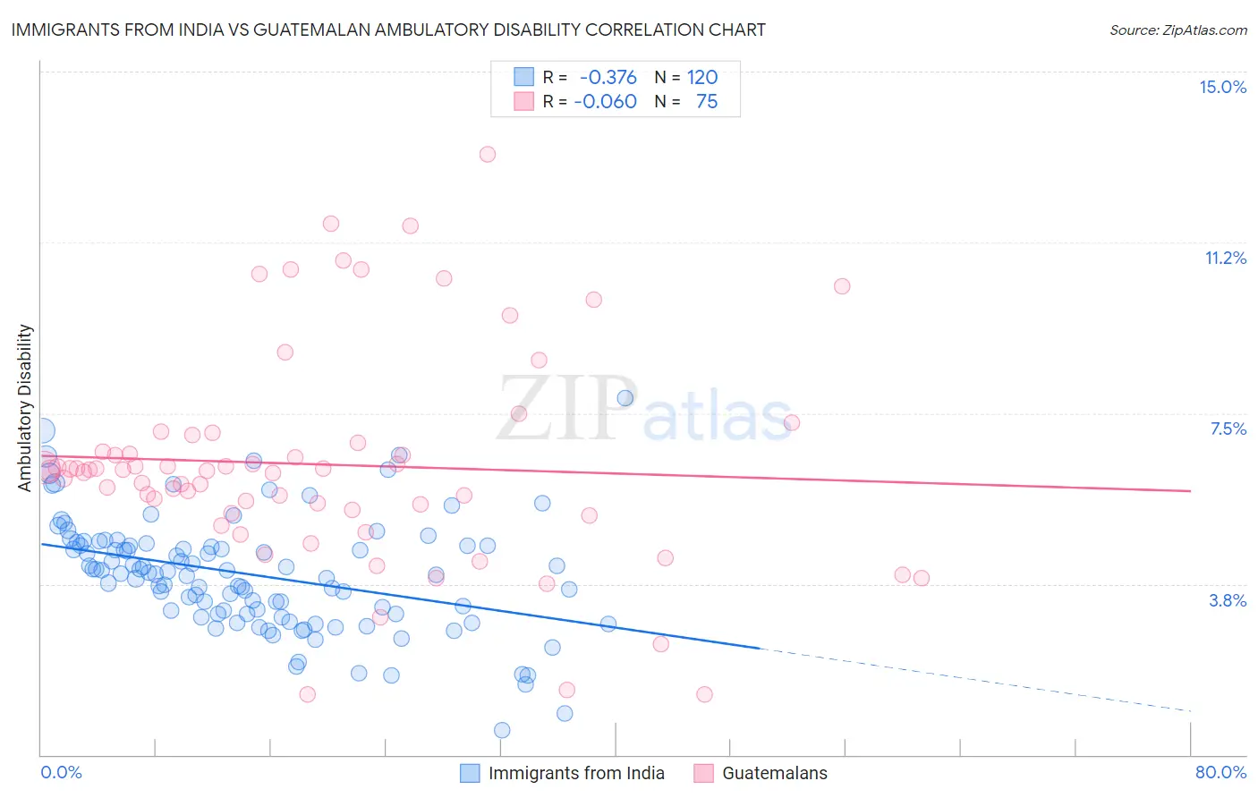 Immigrants from India vs Guatemalan Ambulatory Disability Correlation Chart