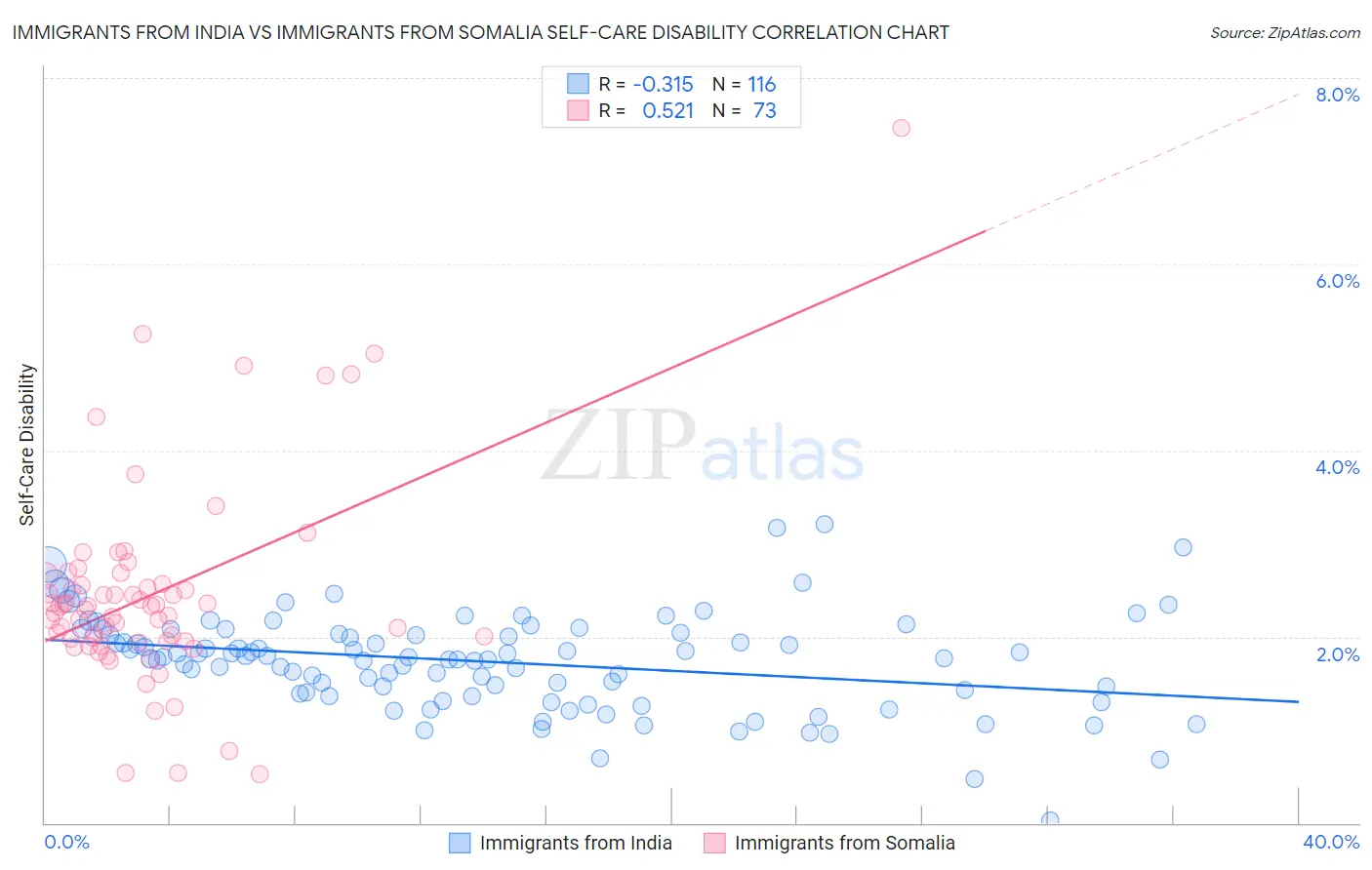 Immigrants from India vs Immigrants from Somalia Self-Care Disability Correlation Chart