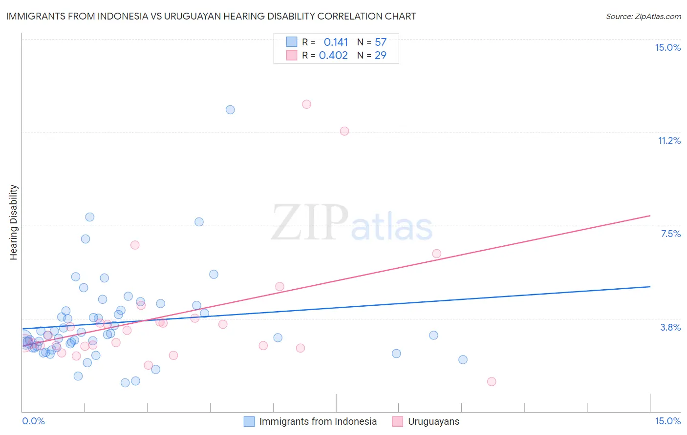 Immigrants from Indonesia vs Uruguayan Hearing Disability Correlation Chart