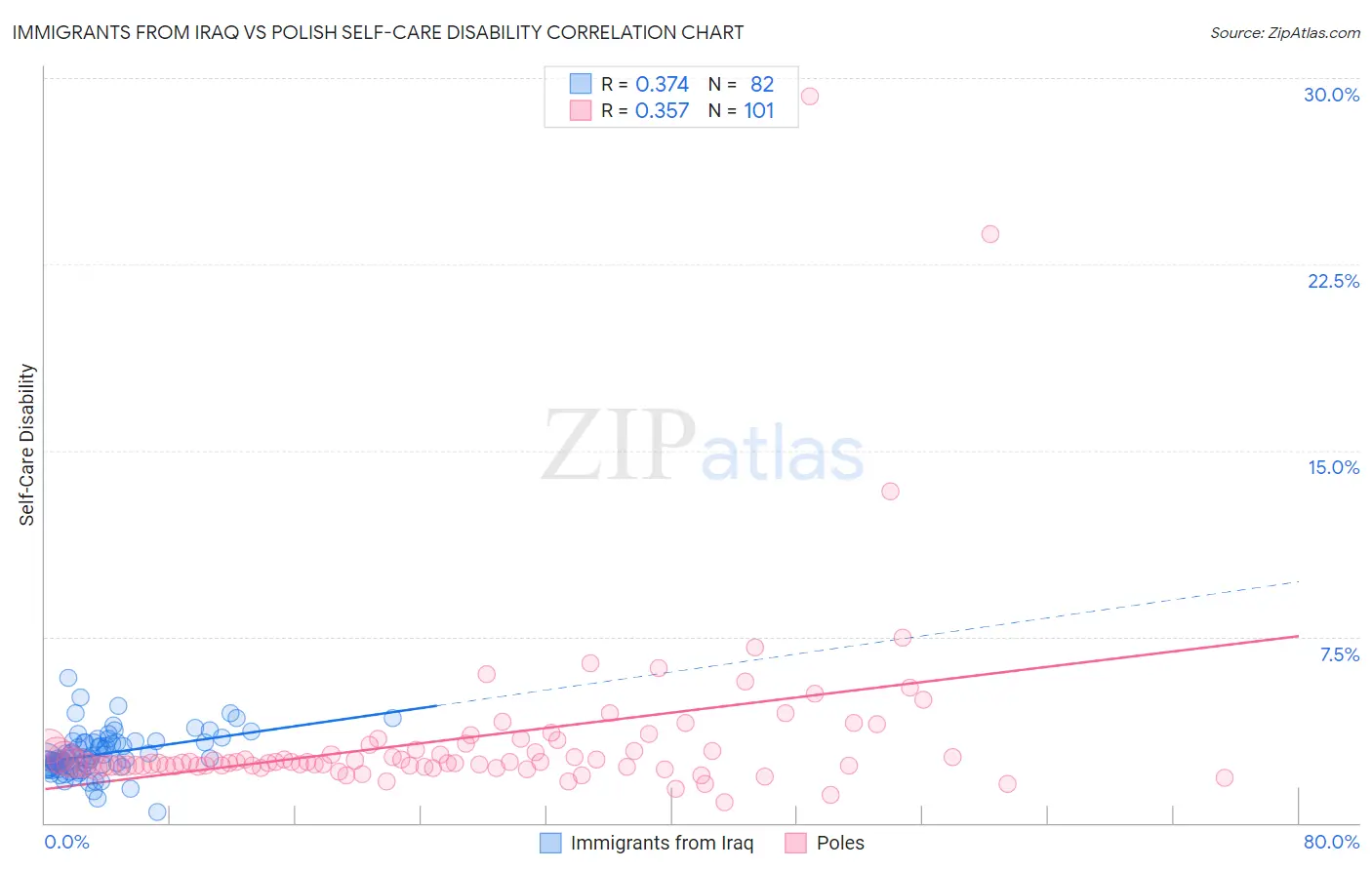 Immigrants from Iraq vs Polish Self-Care Disability Correlation Chart