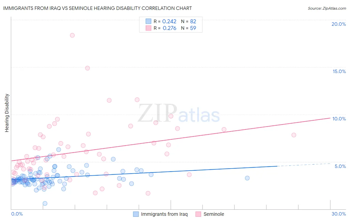 Immigrants from Iraq vs Seminole Hearing Disability Correlation Chart