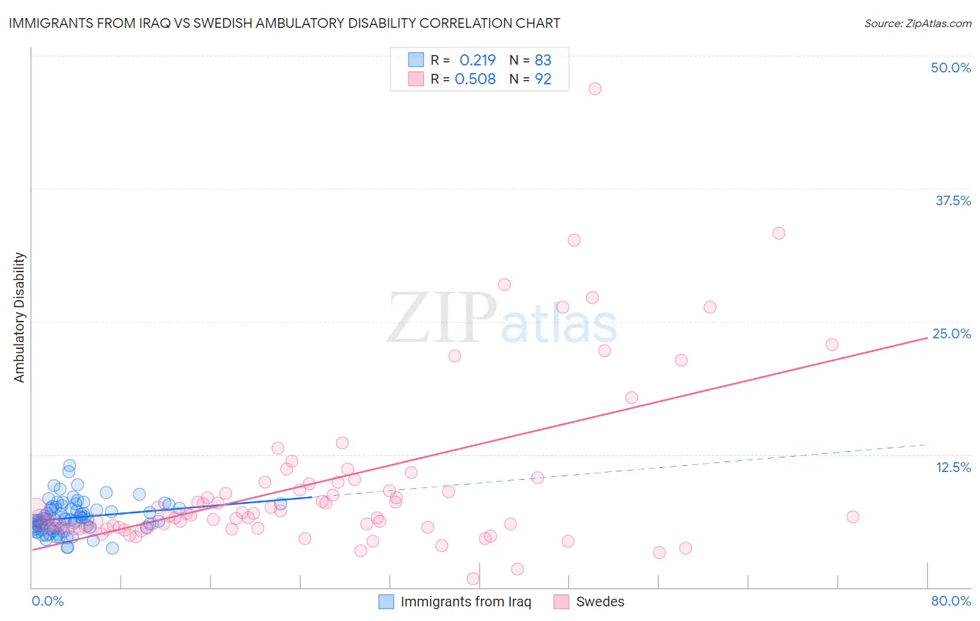 Immigrants from Iraq vs Swedish Ambulatory Disability Correlation Chart