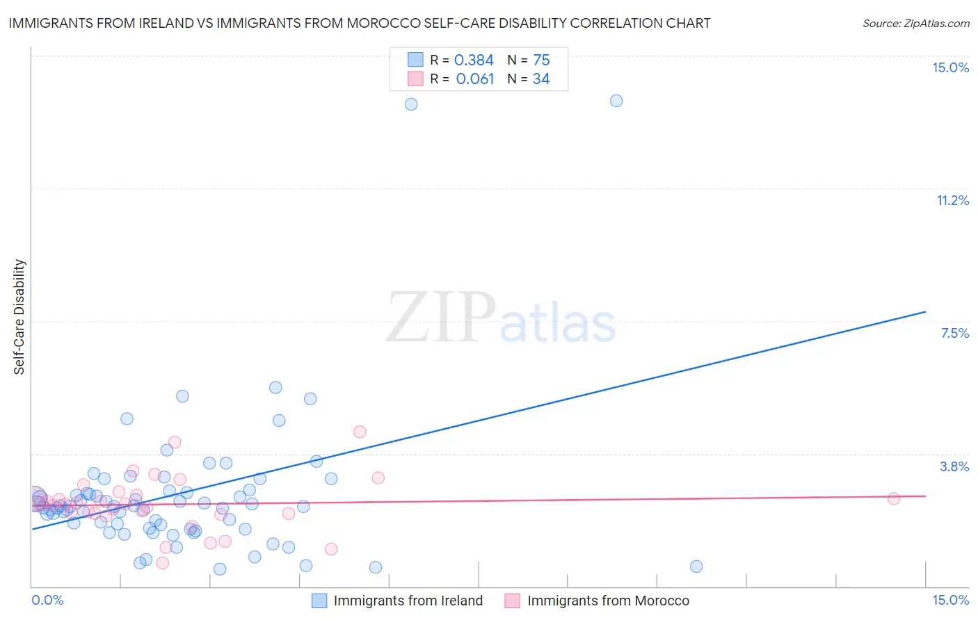 Immigrants from Ireland vs Immigrants from Morocco Self-Care Disability Correlation Chart