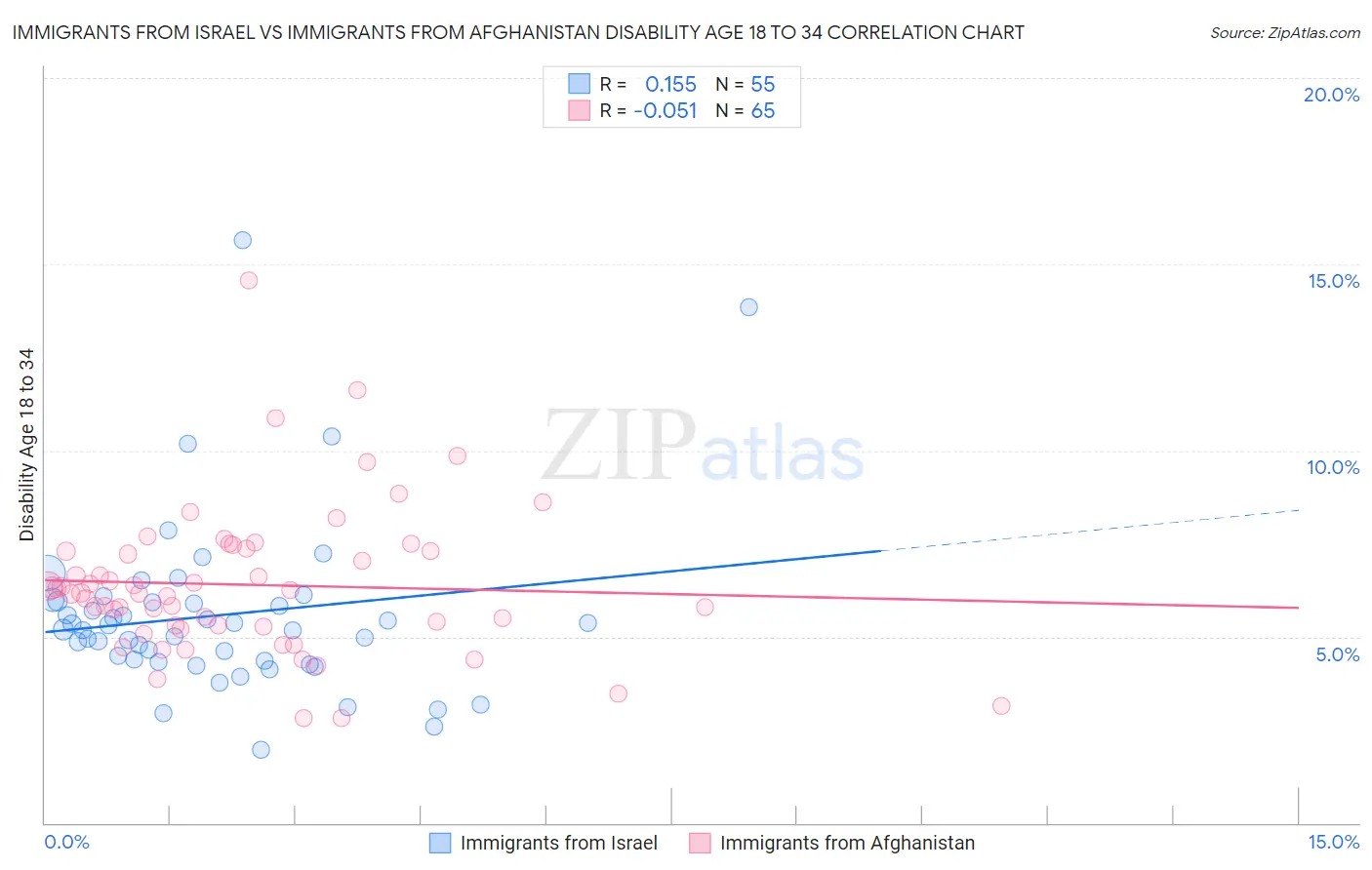 Immigrants from Israel vs Immigrants from Afghanistan Disability Age 18 to 34 Correlation Chart