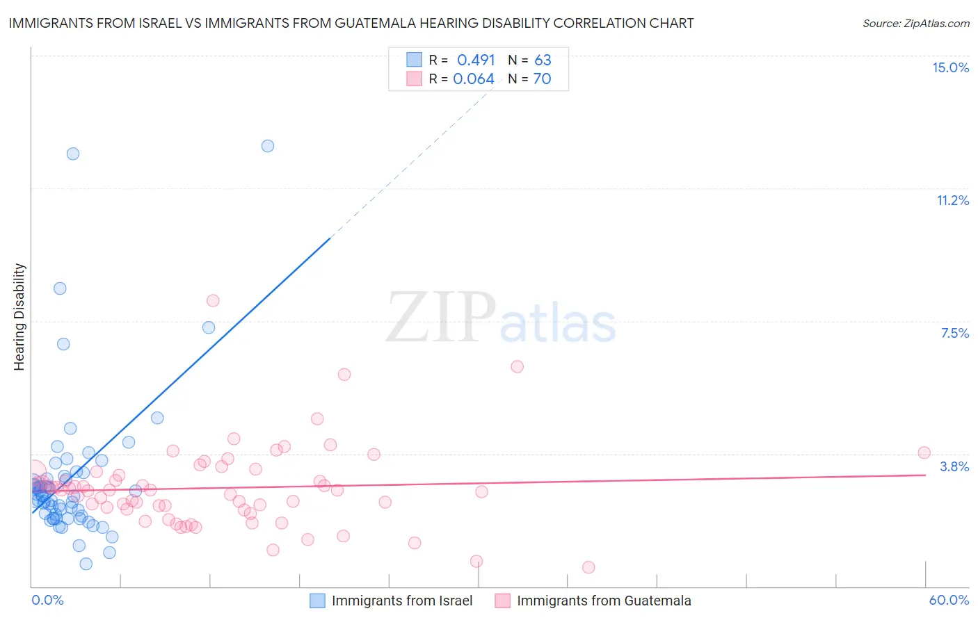 Immigrants from Israel vs Immigrants from Guatemala Hearing Disability Correlation Chart