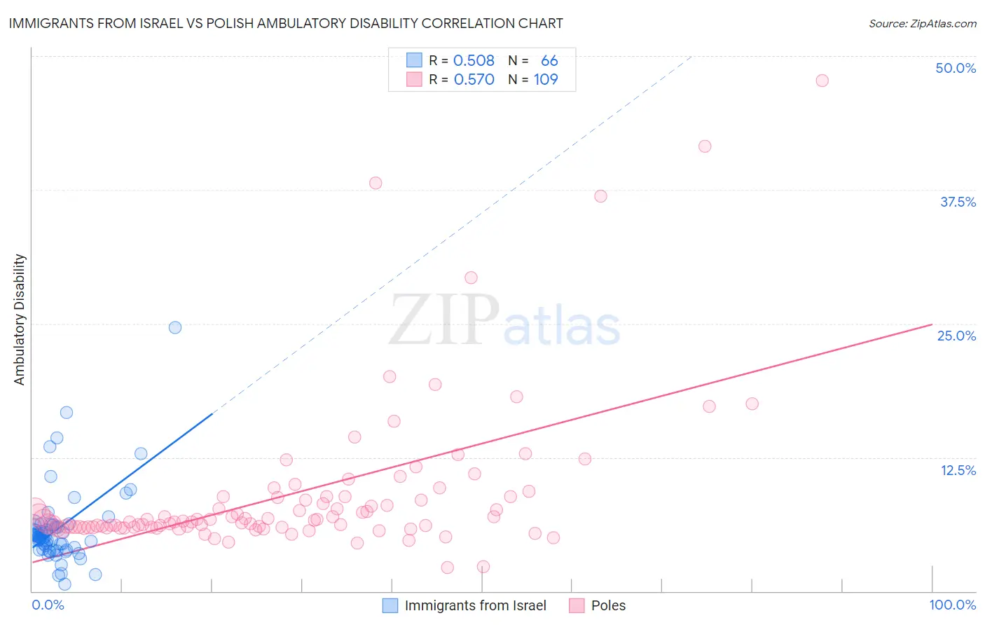 Immigrants from Israel vs Polish Ambulatory Disability Correlation Chart