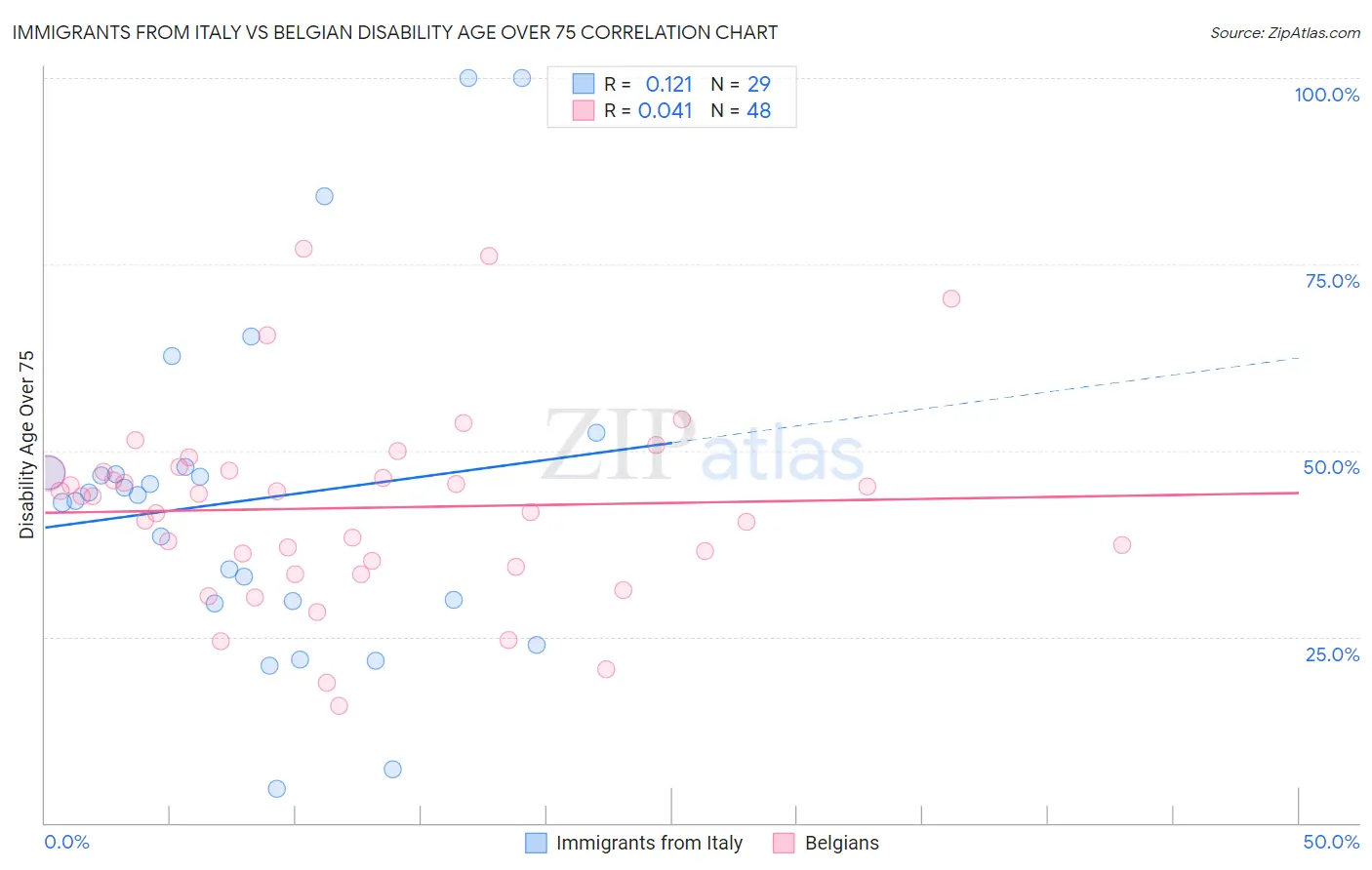 Immigrants from Italy vs Belgian Disability Age Over 75 Correlation Chart