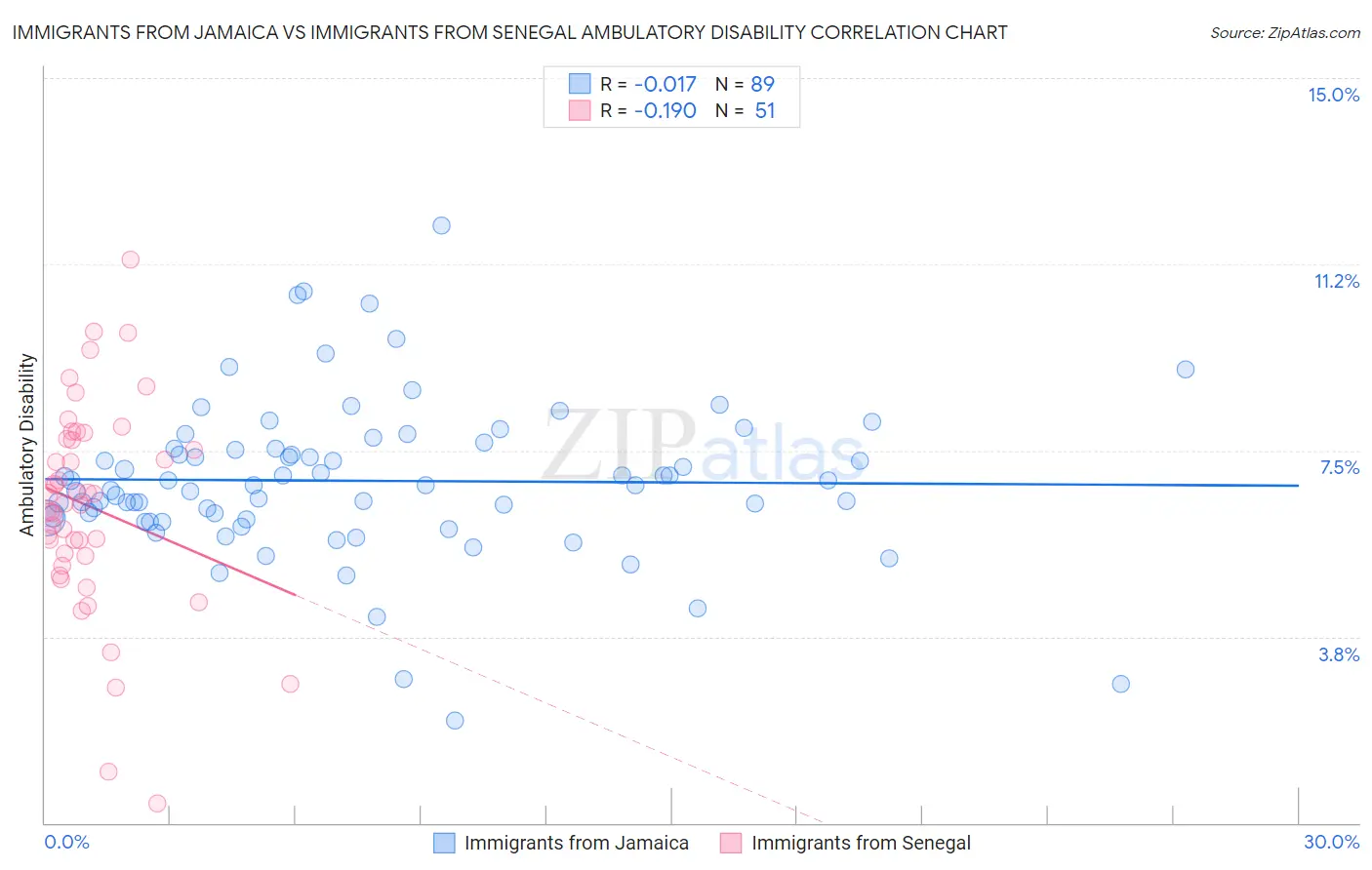 Immigrants from Jamaica vs Immigrants from Senegal Ambulatory Disability Correlation Chart