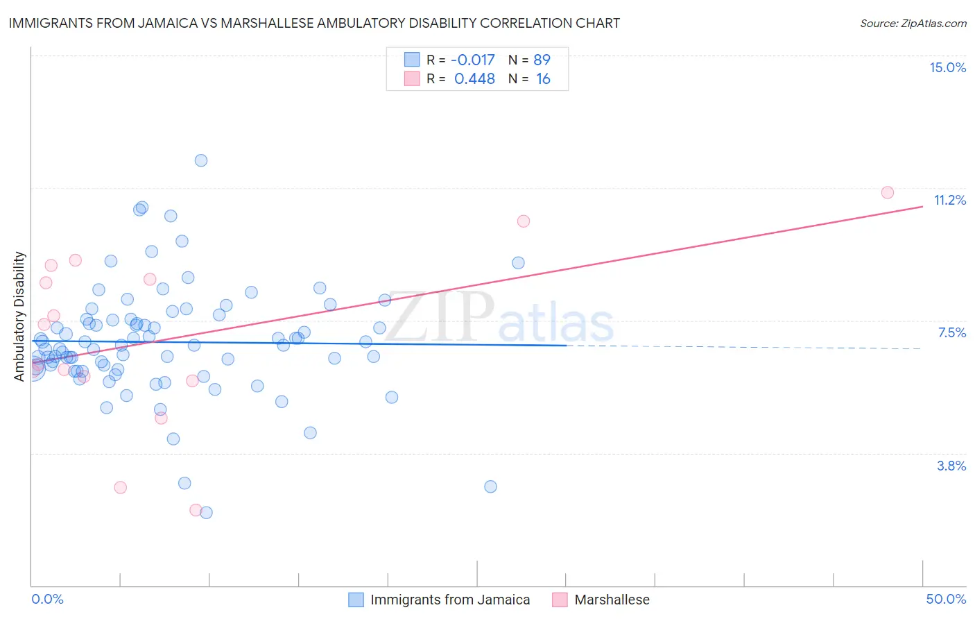 Immigrants from Jamaica vs Marshallese Ambulatory Disability Correlation Chart