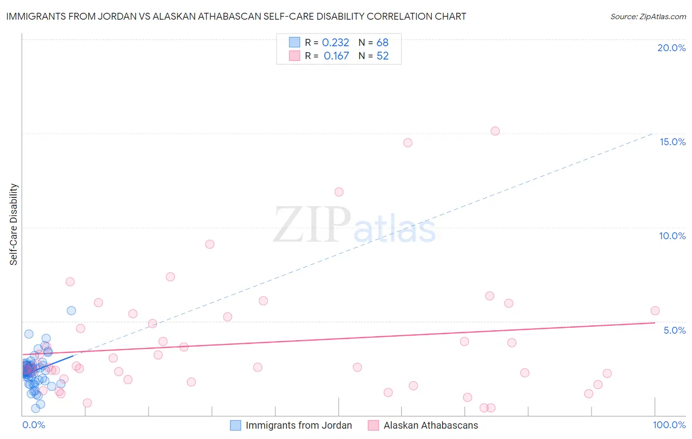 Immigrants from Jordan vs Alaskan Athabascan Self-Care Disability Correlation Chart