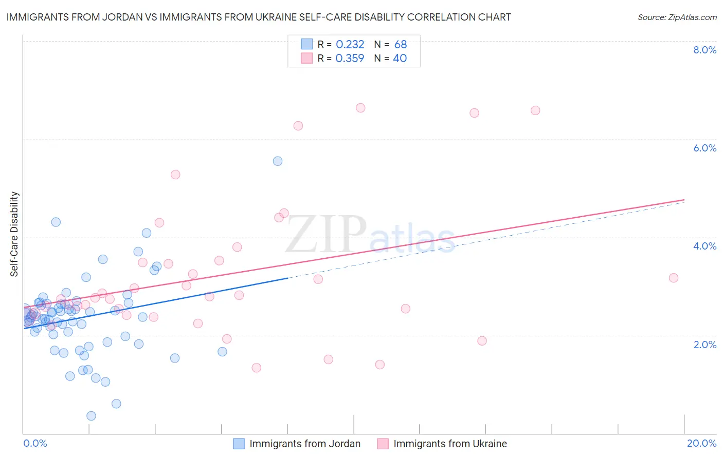 Immigrants from Jordan vs Immigrants from Ukraine Self-Care Disability Correlation Chart
