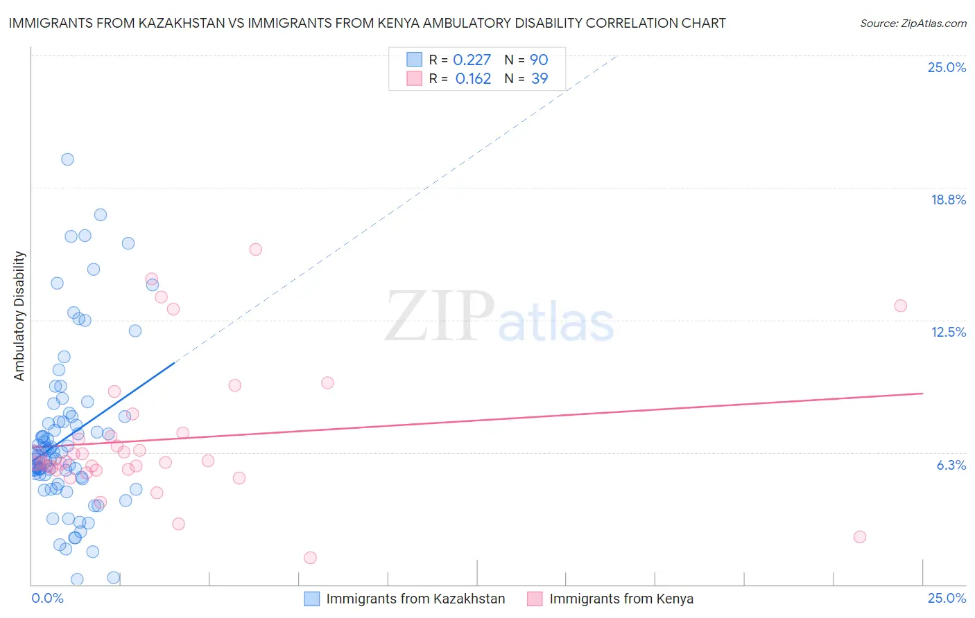 Immigrants from Kazakhstan vs Immigrants from Kenya Ambulatory Disability Correlation Chart