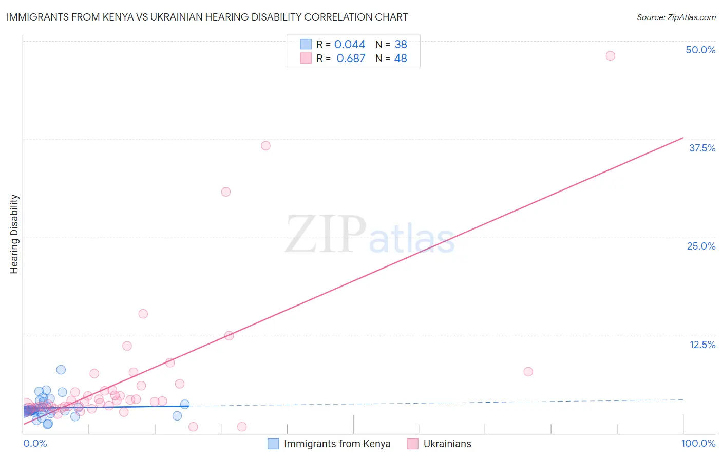 Immigrants from Kenya vs Ukrainian Hearing Disability Correlation Chart
