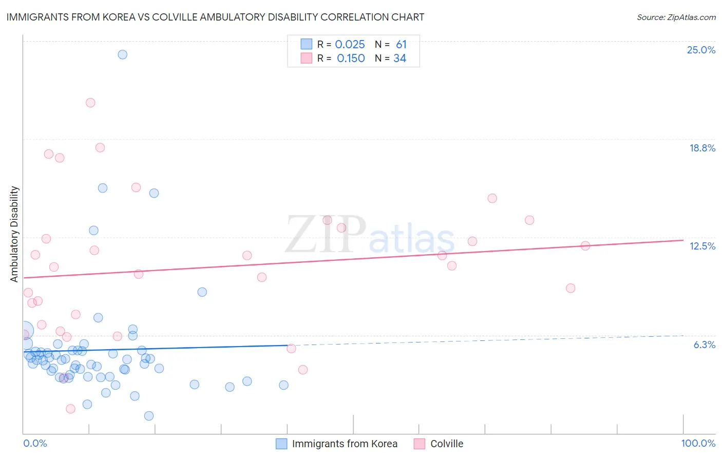 Immigrants from Korea vs Colville Ambulatory Disability Correlation Chart