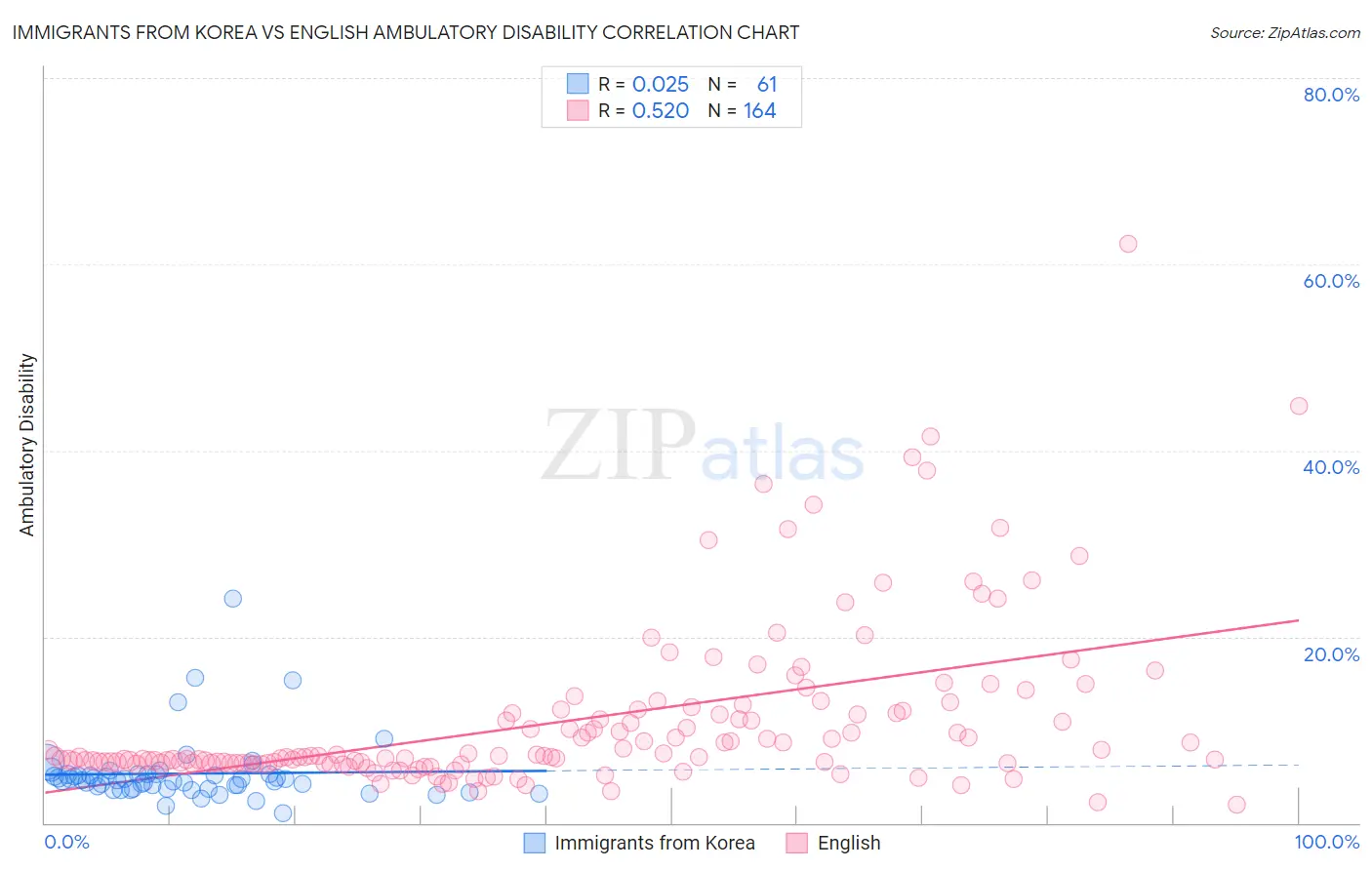 Immigrants from Korea vs English Ambulatory Disability Correlation Chart
