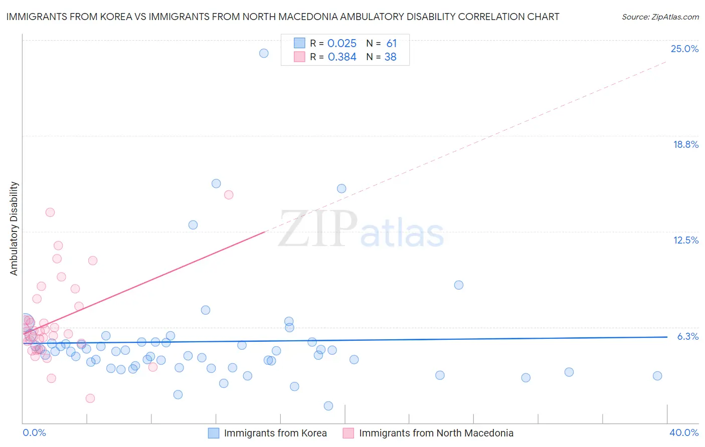 Immigrants from Korea vs Immigrants from North Macedonia Ambulatory Disability Correlation Chart
