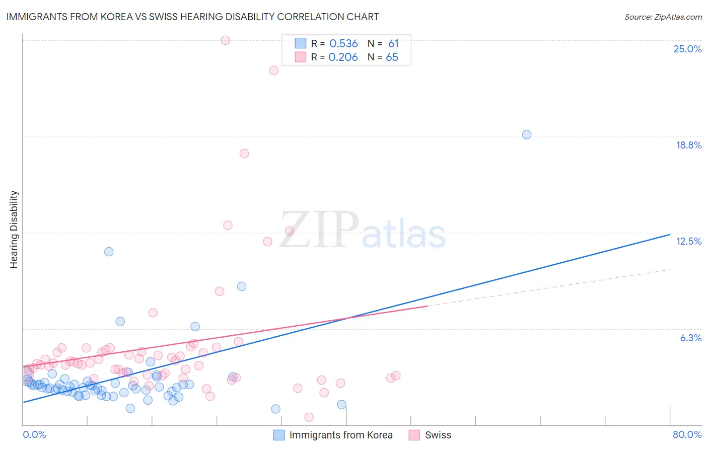 Immigrants from Korea vs Swiss Hearing Disability Correlation Chart