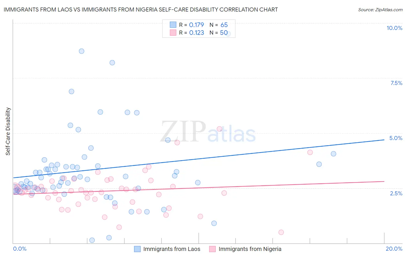 Immigrants from Laos vs Immigrants from Nigeria Self-Care Disability Correlation Chart