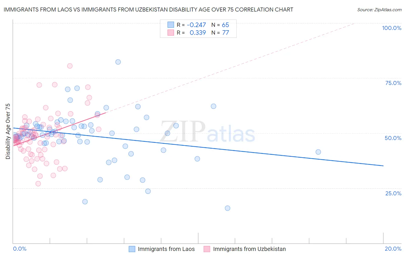 Immigrants from Laos vs Immigrants from Uzbekistan Disability Age Over 75 Correlation Chart
