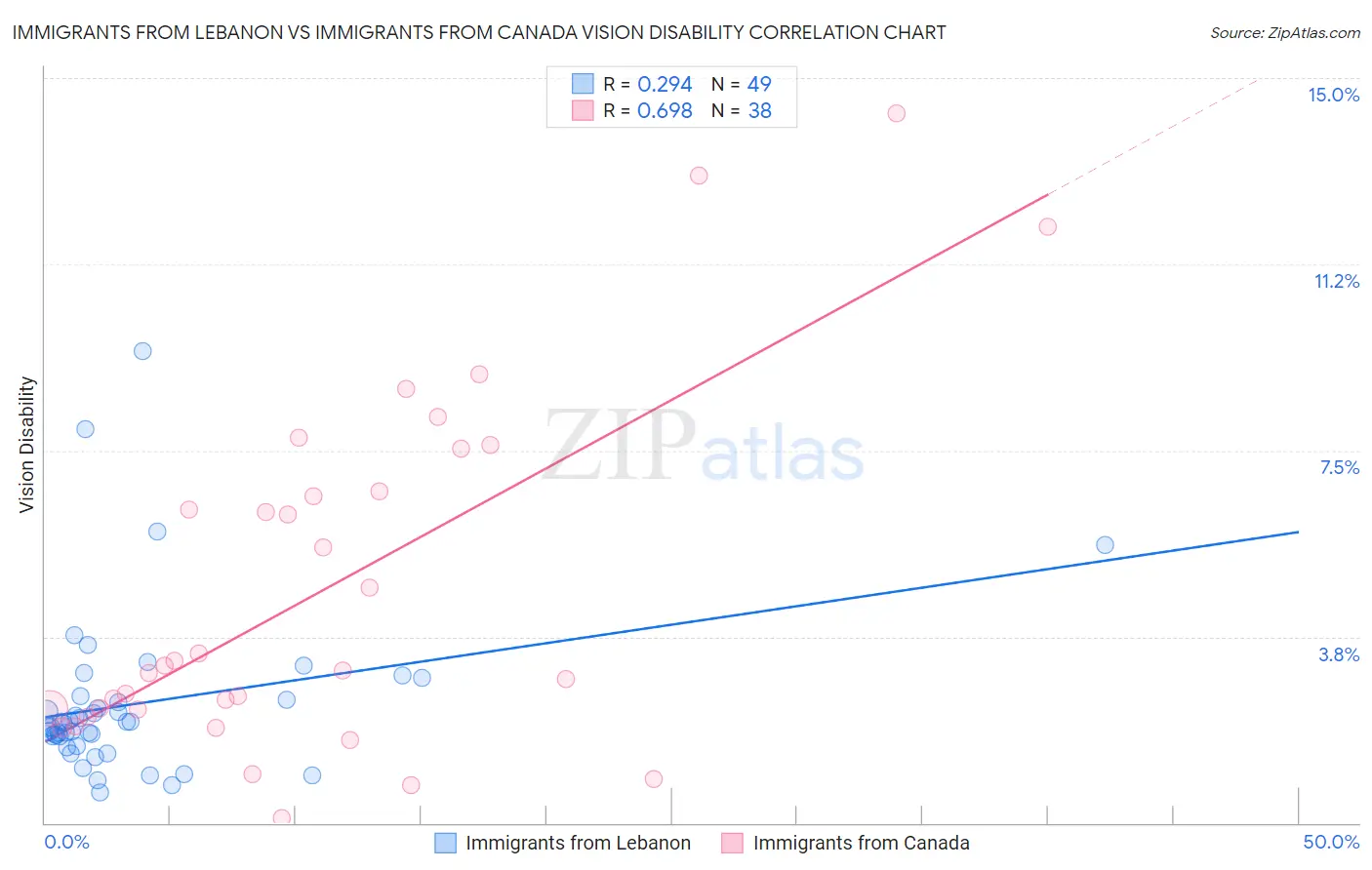 Immigrants from Lebanon vs Immigrants from Canada Vision Disability Correlation Chart