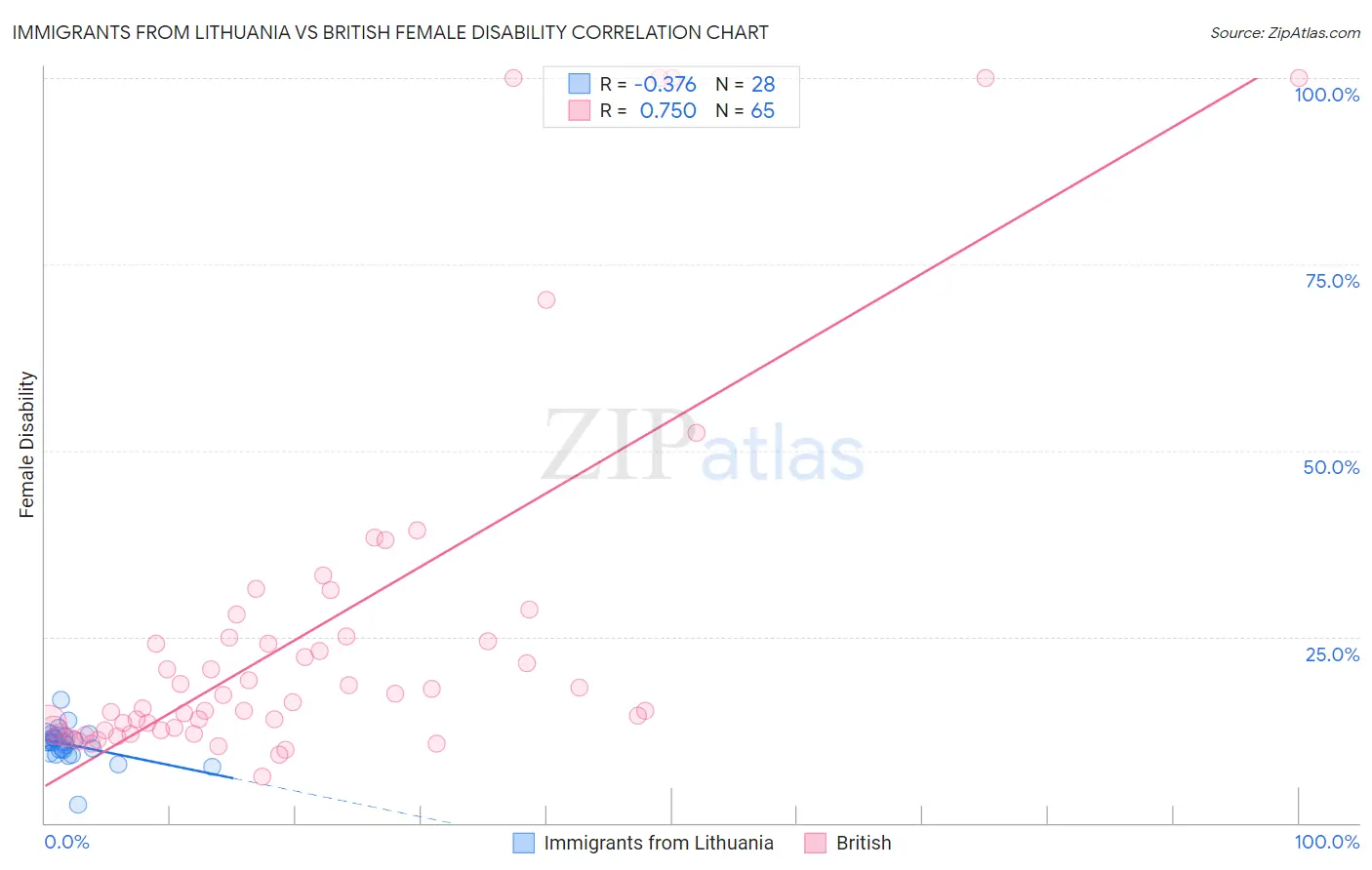 Immigrants from Lithuania vs British Female Disability Correlation Chart