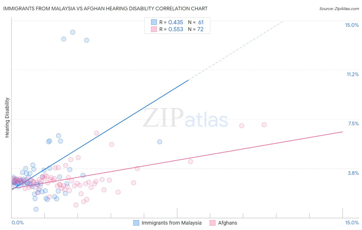 Immigrants from Malaysia vs Afghan Hearing Disability Correlation Chart