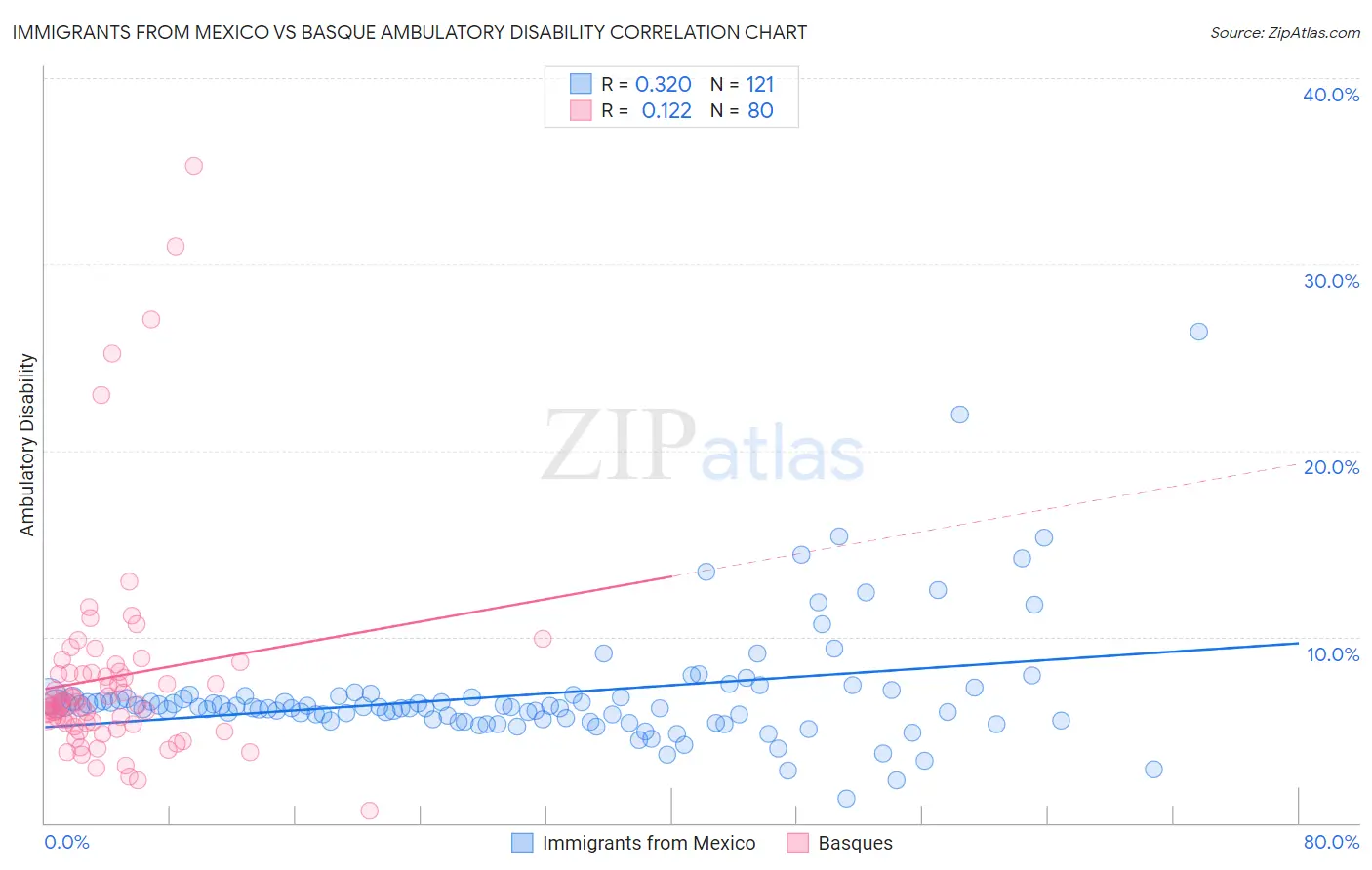 Immigrants from Mexico vs Basque Ambulatory Disability Correlation Chart