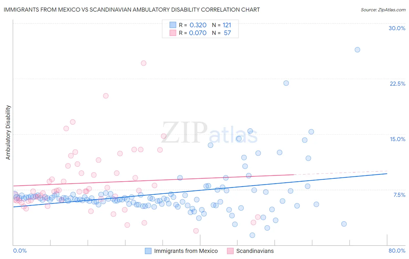 Immigrants from Mexico vs Scandinavian Ambulatory Disability Correlation Chart