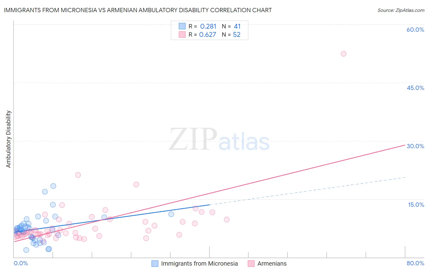Immigrants from Micronesia vs Armenian Ambulatory Disability Correlation Chart