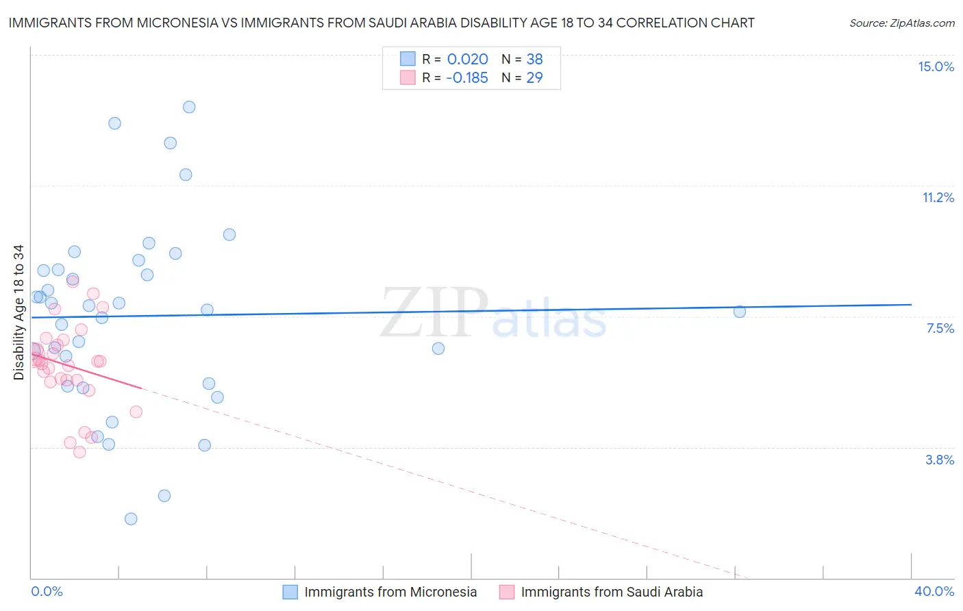 Immigrants from Micronesia vs Immigrants from Saudi Arabia Disability Age 18 to 34 Correlation Chart