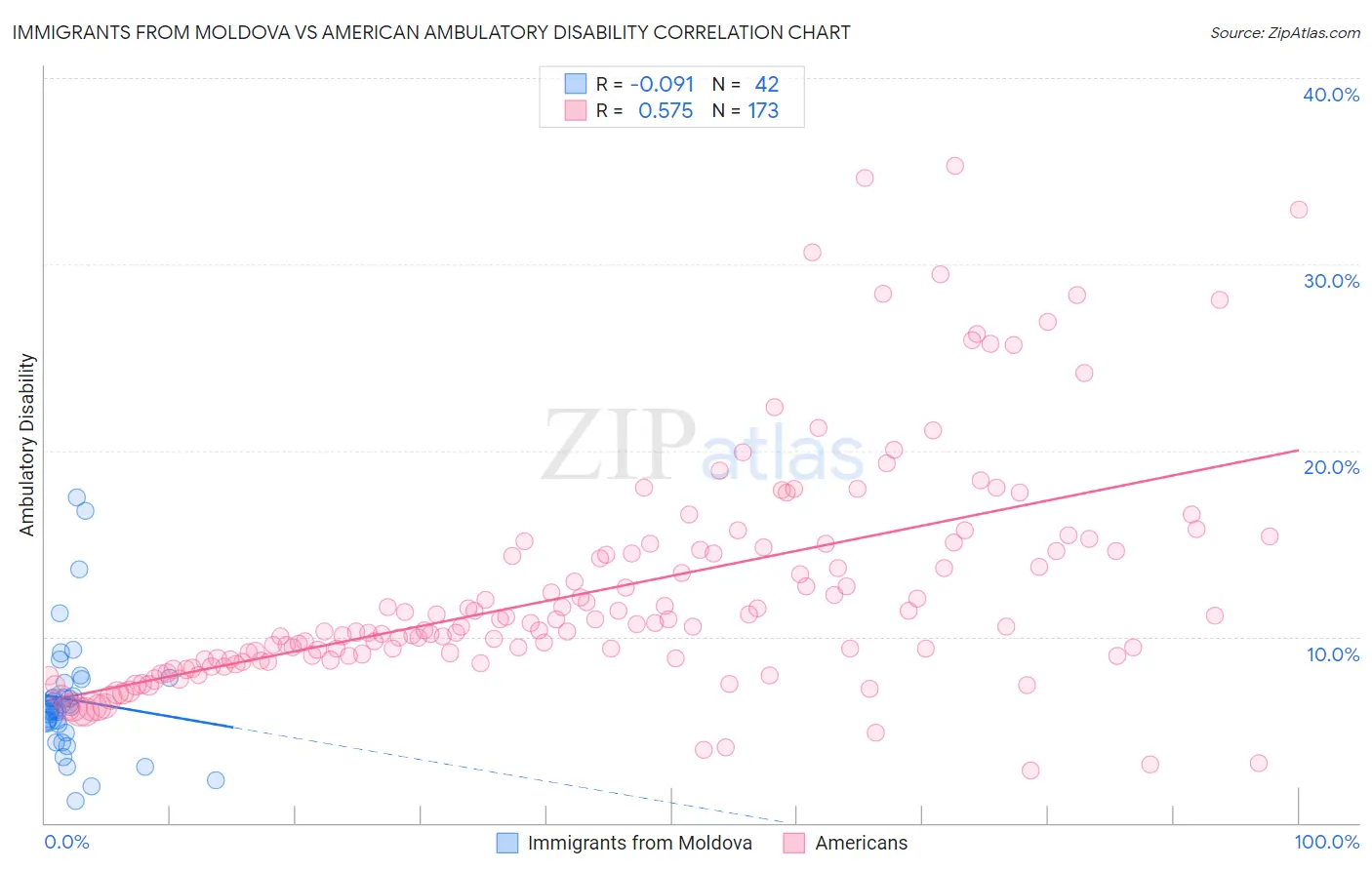 Immigrants from Moldova vs American Ambulatory Disability Correlation Chart