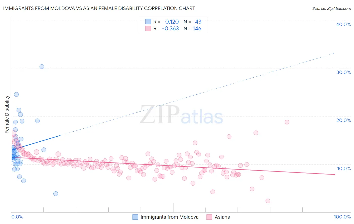 Immigrants from Moldova vs Asian Female Disability
