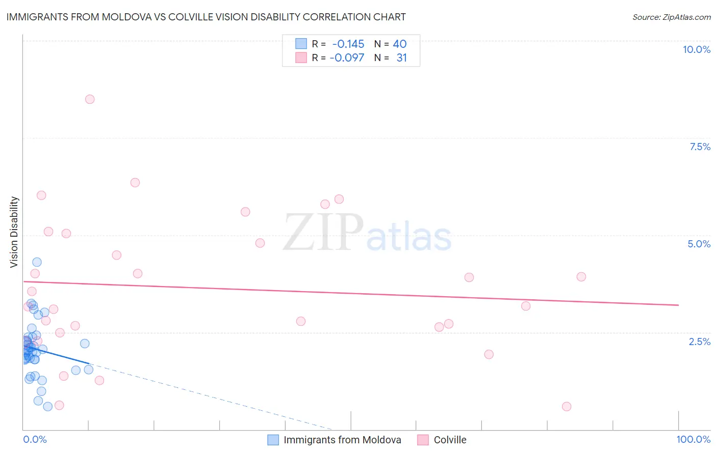 Immigrants from Moldova vs Colville Vision Disability Correlation Chart