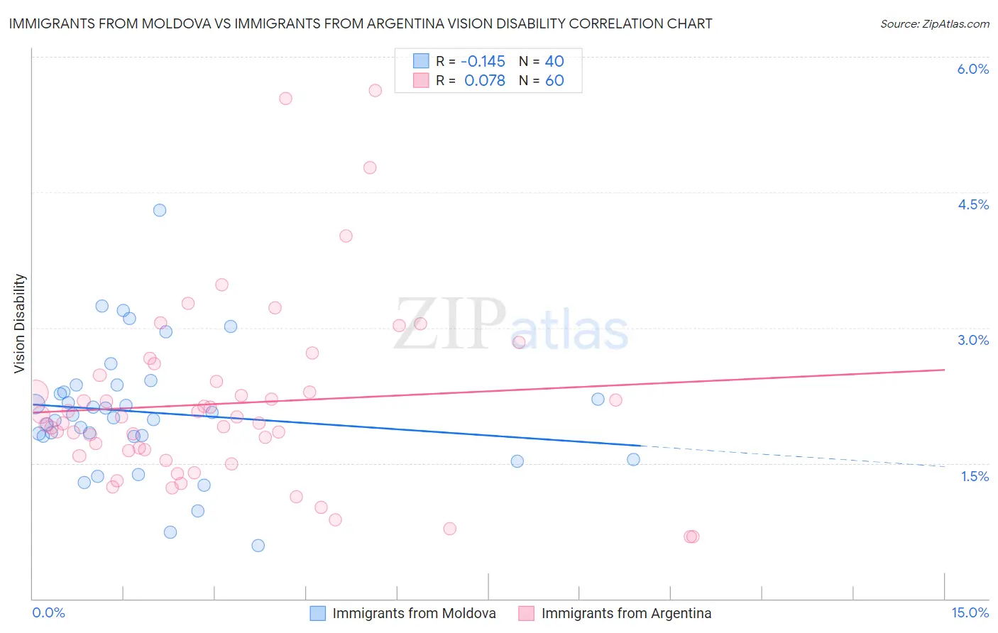 Immigrants from Moldova vs Immigrants from Argentina Vision Disability Correlation Chart