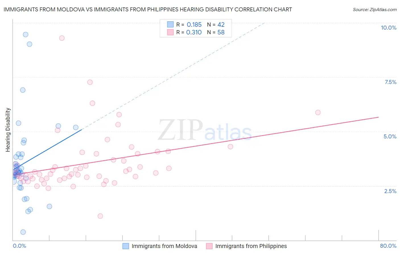 Immigrants from Moldova vs Immigrants from Philippines Hearing Disability Correlation Chart