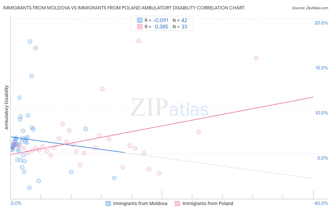Immigrants from Moldova vs Immigrants from Poland Ambulatory Disability Correlation Chart