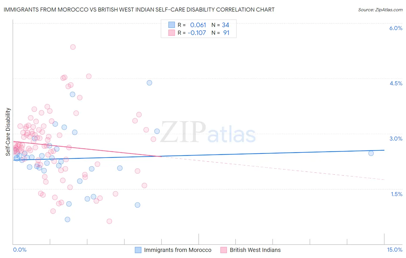 Immigrants from Morocco vs British West Indian Self-Care Disability Correlation Chart