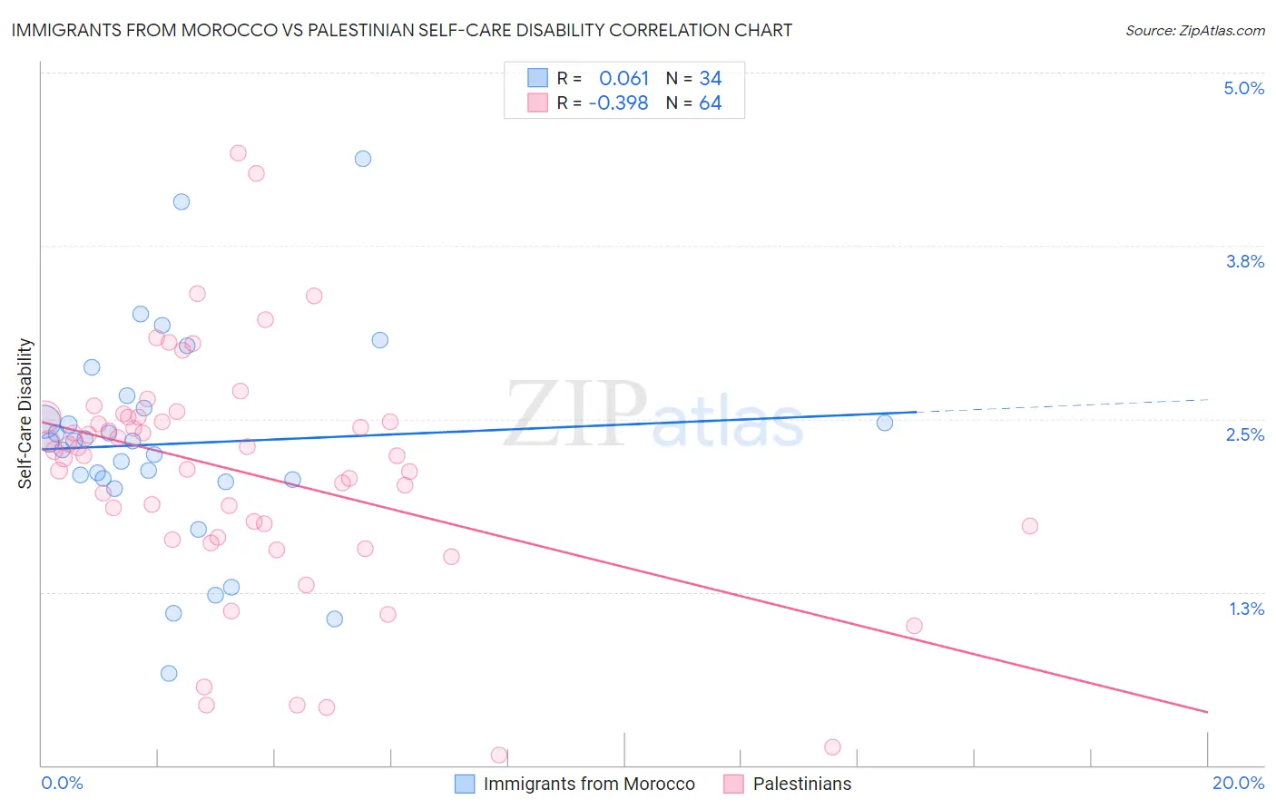 Immigrants from Morocco vs Palestinian Self-Care Disability Correlation Chart