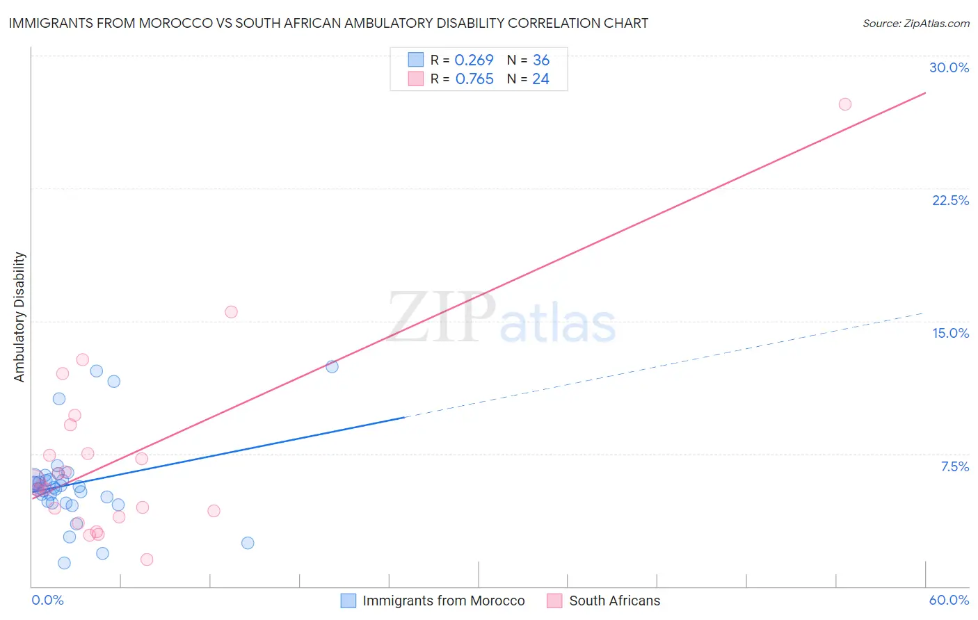 Immigrants from Morocco vs South African Ambulatory Disability Correlation Chart