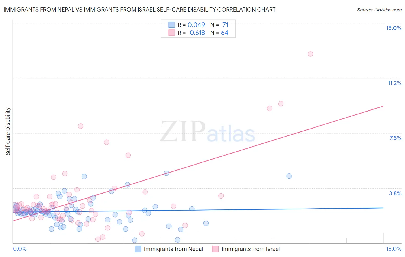 Immigrants from Nepal vs Immigrants from Israel Self-Care Disability Correlation Chart